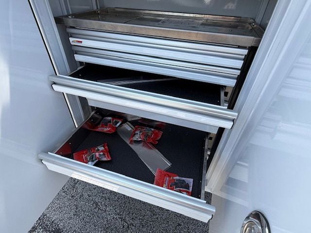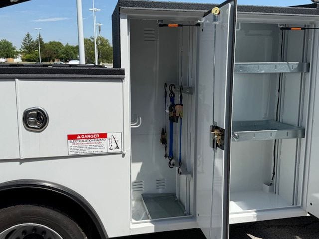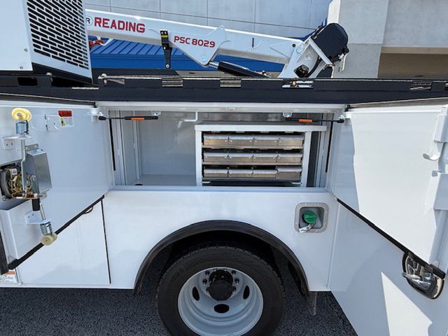11FT READING RM-45 MASTER MECHANICS BODY. PALFINGER 8,000# CRANE. VANAIR 40 CFM AIR COMPRESSOR. SPRAY LINER ALL LOADSPACE OF BODY, TAILGATE, REAR BUMPER. LED COMPARTMENT LIGHTS.