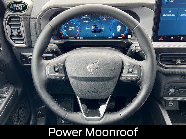 I got a 2025 Big Bend with the black diamond off road package. The steel modular front and rear in combination with bush guard gives this year model. A very aggressive off road look. With the ability to easily mount accessories and power them with the factory installed auxiliary switches. Hitch receiver seamlessly mounted into the rear steel bumper flanked by some very chunky recovery points. The upgraded aluminum rims wrapped with Continental all-terrains. It make this the most capable bronco sport yet. The interior of the 2025 has been updated with a new 13 inch touchscreen with Android Auto and apple car play. The lines of the dash flow elegantly from the new infotainment screen to the new all digital 12 inch gauge chaster. Toggling through the different modes on the gauge chaster is very intuitive, and all the displays are laid out very cleanly. Moving from gauge chaster the center storage cubby just below the infotainment screen there is a wireless charger and USB/ USB-c ports. The passenger side of that same cubby gets a handle and a matching one on the roof just in case the driver bucks a little too much. The passenger also gets a mesh storage area. That leads us to the fact this vehicle has tons of storage options all throughout. You have pockets on the sides of the front two seat big enough for the latest new phones. Very generous door storage on all four doors plus huge glove box and center console with 12 volt outlet. The back side of the center console has air vents and another 12 volt outlet plus a 110 outlet. Now getting to the cargo area it is massive for a crossover SUV. With off road package you get a cargo management system and a very nice rubber mat. Under that there is a full size tire plus scissor jack and funnel to use with the capless filler system. On the liftgate there isa pair of very bright led lights turned on with a switch in the cargo area. This feature packed vehicle has tons awesome gadgets and hidden a little homages I spend all day just talk that. At the end of the day it is car. So how does it drive. It is wonderful, the steering and pedal response is beautiful. Rides very smooth and little to no road noise going down the highway. The active cruise control and co-pilot 360 have been very handy. The car literally drives itself most of the time. There is not enough good things I could same about this car. I love it and you pick one too. You will see what I mean. - 5.0