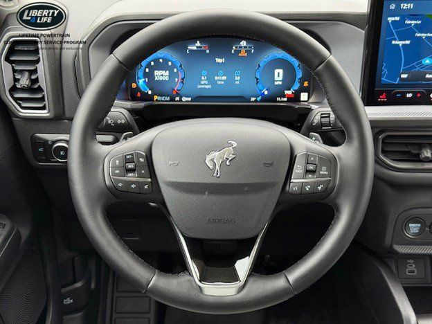 I got a 2025 Big Bend with the black diamond off road package. The steel modular front and rear in combination with bush guard gives this year model. A very aggressive off road look. With the ability to easily mount accessories and power them with the factory installed auxiliary switches. Hitch receiver seamlessly mounted into the rear steel bumper flanked by some very chunky recovery points. The upgraded aluminum rims wrapped with Continental all-terrains. It make this the most capable bronco sport yet. The interior of the 2025 has been updated with a new 13 inch touchscreen with Android Auto and apple car play. The lines of the dash flow elegantly from the new infotainment screen to the new all digital 12 inch gauge chaster. Toggling through the different modes on the gauge chaster is very intuitive, and all the displays are laid out very cleanly. Moving from gauge chaster the center storage cubby just below the infotainment screen there is a wireless charger and USB/ USB-c ports. The passenger side of that same cubby gets a handle and a matching one on the roof just in case the driver bucks a little too much. The passenger also gets a mesh storage area. That leads us to the fact this vehicle has tons of storage options all throughout. You have pockets on the sides of the front two seat big enough for the latest new phones. Very generous door storage on all four doors plus huge glove box and center console with 12 volt outlet. The back side of the center console has air vents and another 12 volt outlet plus a 110 outlet. Now getting to the cargo area it is massive for a crossover SUV. With off road package you get a cargo management system and a very nice rubber mat. Under that there is a full size tire plus scissor jack and funnel to use with the capless filler system. On the liftgate there isa pair of very bright led lights turned on with a switch in the cargo area. This feature packed vehicle has tons awesome gadgets and hidden a little homages I spend all day just talk that. At the end of the day it is car. So how does it drive. It is wonderful, the steering and pedal response is beautiful. Rides very smooth and little to no road noise going down the highway. The active cruise control and co-pilot 360 have been very handy. The car literally drives itself most of the time. There is not enough good things I could same about this car. I love it and you pick one too. You will see what I mean. - 5.0