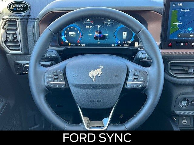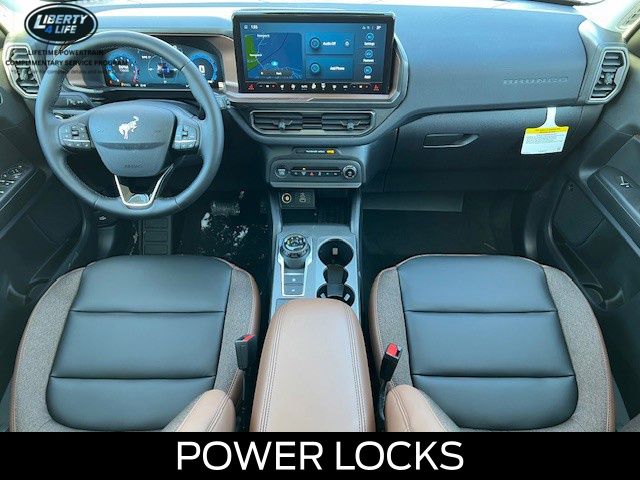 I got a 2025 Big Bend with the black diamond off road package. The steel modular front and rear in combination with bush guard gives this year model. A very aggressive off road look. With the ability to easily mount accessories and power them with the factory installed auxiliary switches. Hitch receiver seamlessly mounted into the rear steel bumper flanked by some very chunky recovery points. The upgraded aluminum rims wrapped with Continental all-terrains. It make this the most capable bronco sport yet. The interior of the 2025 has been updated with a new 13 inch touchscreen with Android Auto and apple car play. The lines of the dash flow elegantly from the new infotainment screen to the new all digital 12 inch gauge chaster. Toggling through the different modes on the gauge chaster is very intuitive, and all the displays are laid out very cleanly. Moving from gauge chaster the center storage cubby just below the infotainment screen there is a wireless charger and USB/ USB-c ports. The passenger side of that same cubby gets a handle and a matching one on the roof just in case the driver bucks a little too much. The passenger also gets a mesh storage area. That leads us to the fact this vehicle has tons of storage options all throughout. You have pockets on the sides of the front two seat big enough for the latest new phones. Very generous door storage on all four doors plus huge glove box and center console with 12 volt outlet. The back side of the center console has air vents and another 12 volt outlet plus a 110 outlet. Now getting to the cargo area it is massive for a crossover SUV. With off road package you get a cargo management system and a very nice rubber mat. Under that there is a full size tire plus scissor jack and funnel to use with the capless filler system. On the liftgate there isa pair of very bright led lights turned on with a switch in the cargo area. This feature packed vehicle has tons awesome gadgets and hidden a little homages I spend all day just talk that. At the end of the day it is car. So how does it drive. It is wonderful, the steering and pedal response is beautiful. Rides very smooth and little to no road noise going down the highway. The active cruise control and co-pilot 360 have been very handy. The car literally drives itself most of the time. There is not enough good things I could same about this car. I love it and you pick one too. You will see what I mean. - 5.0