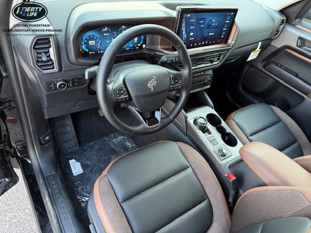 I got a 2025 Big Bend with the black diamond off road package. The steel modular front and rear in combination with bush guard gives this year model. A very aggressive off road look. With the ability to easily mount accessories and power them with the factory installed auxiliary switches. Hitch receiver seamlessly mounted into the rear steel bumper flanked by some very chunky recovery points. The upgraded aluminum rims wrapped with Continental all-terrains. It make this the most capable bronco sport yet. The interior of the 2025 has been updated with a new 13 inch touchscreen with Android Auto and apple car play. The lines of the dash flow elegantly from the new infotainment screen to the new all digital 12 inch gauge chaster. Toggling through the different modes on the gauge chaster is very intuitive, and all the displays are laid out very cleanly. Moving from gauge chaster the center storage cubby just below the infotainment screen there is a wireless charger and USB/ USB-c ports. The passenger side of that same cubby gets a handle and a matching one on the roof just in case the driver bucks a little too much. The passenger also gets a mesh storage area. That leads us to the fact this vehicle has tons of storage options all throughout. You have pockets on the sides of the front two seat big enough for the latest new phones. Very generous door storage on all four doors plus huge glove box and center console with 12 volt outlet. The back side of the center console has air vents and another 12 volt outlet plus a 110 outlet. Now getting to the cargo area it is massive for a crossover SUV. With off road package you get a cargo management system and a very nice rubber mat. Under that there is a full size tire plus scissor jack and funnel to use with the capless filler system. On the liftgate there isa pair of very bright led lights turned on with a switch in the cargo area. This feature packed vehicle has tons awesome gadgets and hidden a little homages I spend all day just talk that. At the end of the day it is car. So how does it drive. It is wonderful, the steering and pedal response is beautiful. Rides very smooth and little to no road noise going down the highway. The active cruise control and co-pilot 360 have been very handy. The car literally drives itself most of the time. There is not enough good things I could same about this car. I love it and you pick one too. You will see what I mean.
