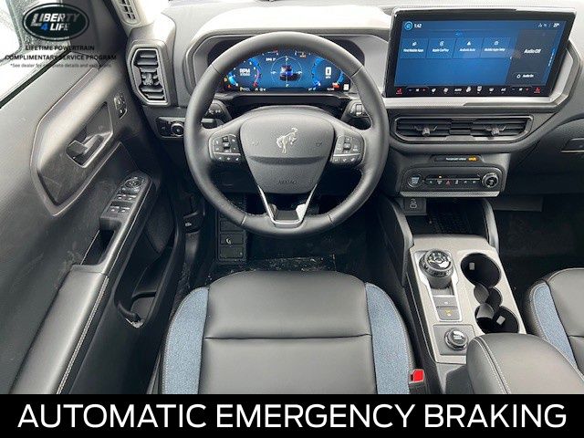 I got a 2025 Big Bend with the black diamond off road package. The steel modular front and rear in combination with bush guard gives this year model. A very aggressive off road look. With the ability to easily mount accessories and power them with the factory installed auxiliary switches. Hitch receiver seamlessly mounted into the rear steel bumper flanked by some very chunky recovery points. The upgraded aluminum rims wrapped with Continental all-terrains. It make this the most capable bronco sport yet. The interior of the 2025 has been updated with a new 13 inch touchscreen with Android Auto and apple car play. The lines of the dash flow elegantly from the new infotainment screen to the new all digital 12 inch gauge chaster. Toggling through the different modes on the gauge chaster is very intuitive, and all the displays are laid out very cleanly. Moving from gauge chaster the center storage cubby just below the infotainment screen there is a wireless charger and USB/ USB-c ports. The passenger side of that same cubby gets a handle and a matching one on the roof just in case the driver bucks a little too much. The passenger also gets a mesh storage area. That leads us to the fact this vehicle has tons of storage options all throughout. You have pockets on the sides of the front two seat big enough for the latest new phones. Very generous door storage on all four doors plus huge glove box and center console with 12 volt outlet. The back side of the center console has air vents and another 12 volt outlet plus a 110 outlet. Now getting to the cargo area it is massive for a crossover SUV. With off road package you get a cargo management system and a very nice rubber mat. Under that there is a full size tire plus scissor jack and funnel to use with the capless filler system. On the liftgate there isa pair of very bright led lights turned on with a switch in the cargo area. This feature packed vehicle has tons awesome gadgets and hidden a little homages I spend all day just talk that. At the end of the day it is car. So how does it drive. It is wonderful, the steering and pedal response is beautiful. Rides very smooth and little to no road noise going down the highway. The active cruise control and co-pilot 360 have been very handy. The car literally drives itself most of the time. There is not enough good things I could same about this car. I love it and you pick one too. You will see what I mean.