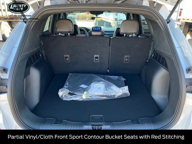 The interior of this Escape has been meticulously crafted to provide you with the ultimate in comfort and convenience. From the heated front seats and steering wheel to the multi-zone climate control and SYNC 4 infotainment system, every detail has been thoughtfully designed to enhance your driving experience. The Partial Vinyl/Cloth Front Sport Contour Bucket Seats with Red Stitching add a touch of sporty flair, while the 8-way power driver's seat and 4-way manual front passenger seat ensure a perfect fit for you and your passengers.