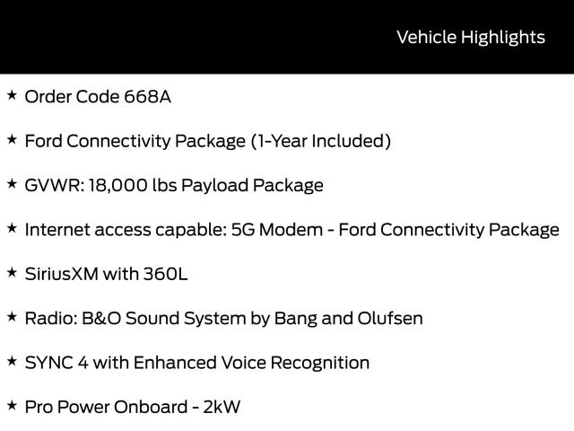 • Internet access capable: 5G Modem - Ford Connectivity Package