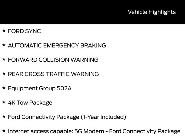 - Equipment Group 502A, Ford Connectivity Package (1-Year Included), Internet access capable: 5G Modem - Ford Connectivity Package