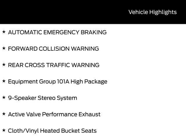 LEATHER SEATS, BACK UP CAMERA, BLUETOOTH, HEATED SEATS, REMOTE START, CRUISE CONTROL, POWER WINDOWS, POWER LOCKS, MULTI-ZONE CLIMATE CONTROL, STEERING WHEEL CONTROLS, AWD / 4WD, LANE DEPARTURE WARNING, LANE KEEP ASSIST, APPLE CARPLAY, ANDROID AUTO, FORD SYNC, AUTOMATIC EMERGENCY BRAKING, FORWARD COLLISION WARNING, REAR CROSS TRAFFIC WARNING, Active Valve Performance Exhaust. 21/32 City/Highway MPG