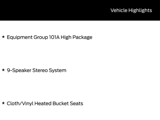 BACK UP CAMERA, BLUETOOTH, REMOTE START, CRUISE CONTROL, POWER WINDOWS, POWER LOCKS, MULTI-ZONE CLIMATE CONTROL, STEERING WHEEL CONTROLS, LANE DEPARTURE WARNING, LANE KEEP ASSIST, APPLE CARPLAY, ANDROID AUTO, FORD SYNC, AUTOMATIC EMERGENCY BRAKING, FORWARD COLLISION WARNING, REAR CROSS TRAFFIC WARNING, 9-Speaker Stereo System, Cloth/Vinyl Heated Bucket Seats, Equipment Group 101A High Package. 21/32 City/Highway MPG