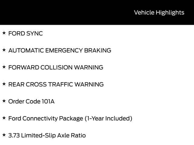 BACK UP CAMERA, BLUETOOTH, CRUISE CONTROL, POWER WINDOWS, POWER LOCKS, STEERING WHEEL CONTROLS, LANE DEPARTURE WARNING, LANE KEEP ASSIST, FORD SYNC, AUTOMATIC EMERGENCY BRAKING, FORWARD COLLISION WARNING, REAR CROSS TRAFFIC WARNING, 3.73 Limited-Slip Axle Ratio, Ford Connectivity Package (1-Year Included), Order Code 101A. Priced below KBB Fair Purchase Price!