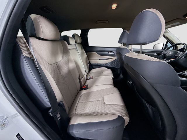The exterior of this Santa Fe is adorned in a sleek Serenity White Pearl finish, complemented by stylish 18-inch alloy wheels and a sporty rear spoiler. Step inside and you'll be greeted by a well-appointed cabin featuring stain-resistant cloth seating, a leather-wrapped steering wheel, and a host of premium amenities.